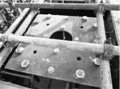 (3)In order that the concrete slurry pours into the bolt hole which leads to the unsuccessfully remove of the late embedded plate when pouring the concrete, the bolt can be covered by some plastic bags. As shown in Figure 10.