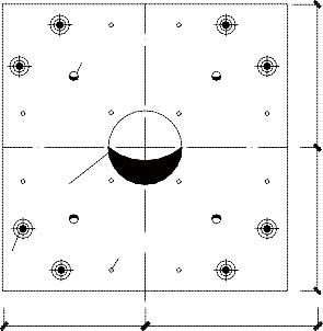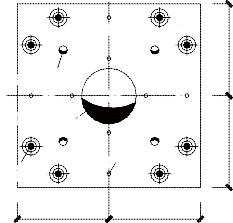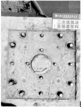 In this test, the isolation bearings under buttress size are 900mm x 900mm x 600mm and 1200mm x 1200mm x 600mm, embedded plate sizes are 670mm x 670mm and 970mm x 970mm, The diameter of 200, 250 mm vent holes are reserved in the middle of the embedded plate, and in the meanwhile, the diameter of 30 mm vent holes are also reserved in the four corners of embedded plate. The anchor rod size of embedded plate is 22mm, bolt size of embedded plate is M18 each, as shown in Figure5-7.