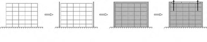 (1)Conventional pouring methods. Firstly, tie the reinforcement to the pier. Then, fix embedded parts, and finally pour concrete. Construction process: tie to the reinforcement of pier→install embedded parts →support shuttering for buttress →pour concrete (completed pouring by one time), as shown in the Figure 1.