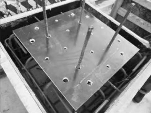In order to conveniently compare the effect of different construction methods, this scheme adopts corresponding adjustment for the embedded part, so the scheme cancels sleeve and uses anchor bar & bolt (replace original stud) to go through embedded parts directly connected by nuts up and down the embedded parts, after the test, the embedded parts can be taken out by unfastening nuts.